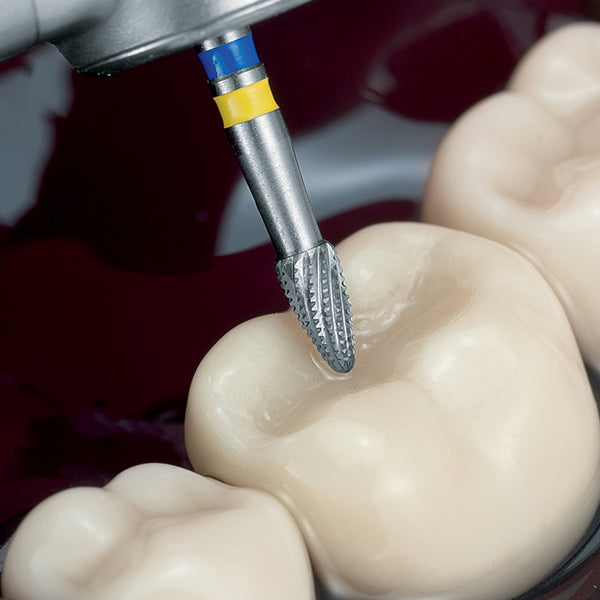 Komet introduces the H1SE, a tungsten carbide round bur featuring unique hybrid toothing built to state-of-the-art standards. The dual toothing design enhances dental functionality and boosts treatment comfort. Its round working part and sharp tip transversing blade enable fast, gentle excavation, while staggered lateral toothing minimizes vibrations for increased patient and dentist comfort. Lab results confirm its exceptionally smooth operation. The H1SEM offers all the benefits of the H1SE with a slim neck for improved visibility—ideal for use with treatment microscopes. Overall, the smooth operation of the H1SEM significantly enhances patient comfort.