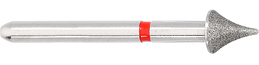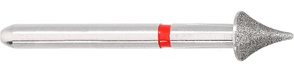 Komet 8833 is a pointed cylinder cone shaped, fine grit (red) diamond trimmer for cavities and occlusal reduction.