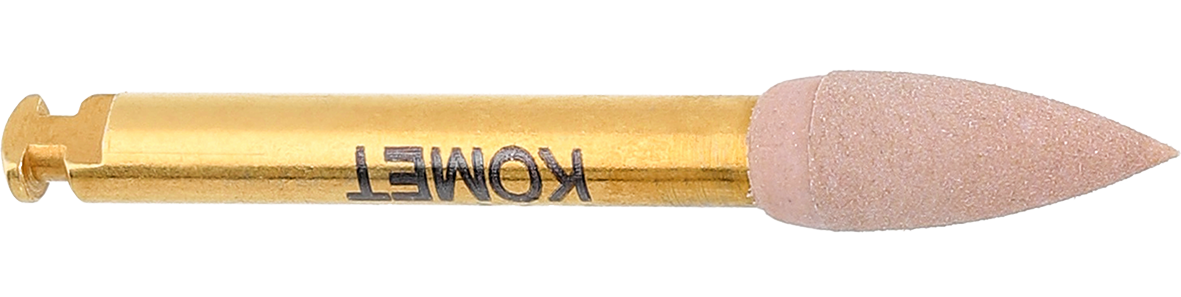 Polishers | CompoBrite&trade Two-step polishing of composites. This new system combines a long service life with outstanding flexibility. After shaping with tungsten carbide finishers or a fine diamond instrument (red ring), the initial pre-polishing stage is performed with the new, light pink polishers. Thanks to their special diamond grit, these polishers are suitable for shape corrections and can effectively pre-polish surfaces. This is followed by the second polishing stage, where the light yellow polishers are used to create a perfect high-shine finish. The brilliant interplay between fine diamond grit and a special bond facilitates the creation of a glossy finish while providing the polishers with an impressively long service life. Advantages: Natural looking high-shine in just two polishing steps Long service life, therefore economic in use Golden shank and a distinct color scheme for easy identification Light pink = pre-polishing Light yellow = high-shine polishing