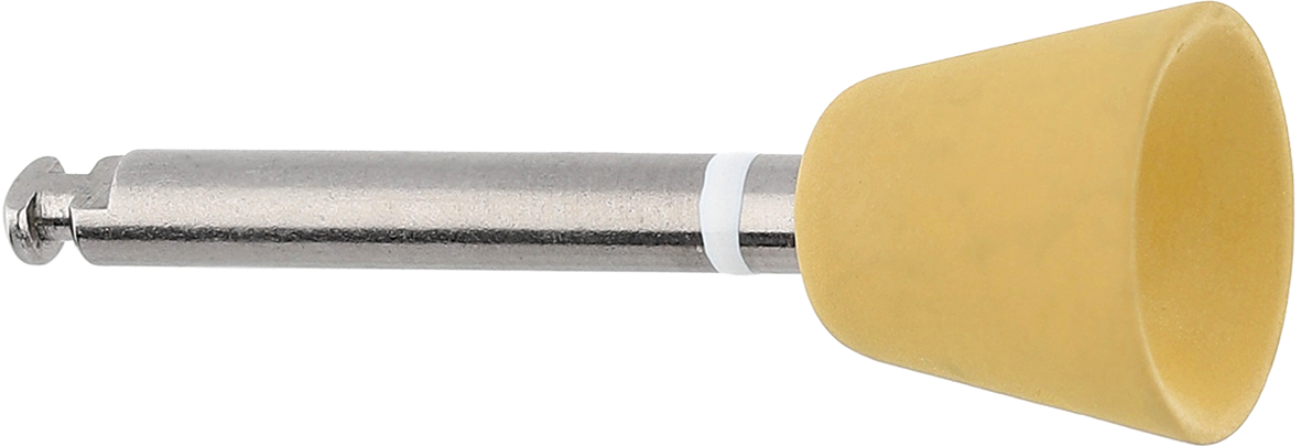 Polishers | Composite One-step, high-shine polish of optimally finished surfaces. The yellow polishers incorporate ultrafine-grit diamond particles to efficiently provide a high-shine polish following the thorough finishing of restoration surfaces. They also feature a special silicone bond that provides outstanding flexibility and conformation to tooth anatomy. Constructed of high-quality, heat-tolerant materials, the polishers can be safely sterilized in an autoclave, and they resist degradation and deformation. Together with our proven Q-Finishers these polishersachieve ahigh-shine polish in just one step. Advantages: Very flexible due to a special silicone bond The use of heat-tolerant materials makes them suitable for sterilization in the autoclave Color-coding (white ring for ultra-fine) in line with diamond grit to avoid confusion