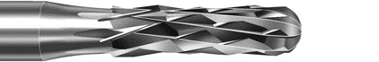 Tip with a transversing blade on tungsten carbide burs for easier penetration into crown material.